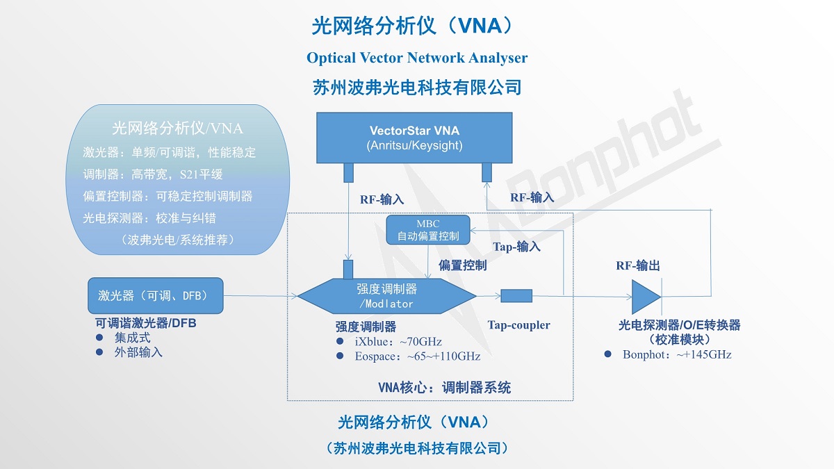 高性能光網絡分析儀(VNA)是高速器件參數測試、EO帶寬/OE帶寬測試、光纖通道&CATV傳輸系統、射頻光纖傳輸、研究研發等應用常用儀器。蘇州leyu集團光電科技有限公司提供基于高帶寬電光調制器(iXblue/Eospace),高達70GHz網絡分析儀系統元器件,這些器件、性能穩定、高性價比。