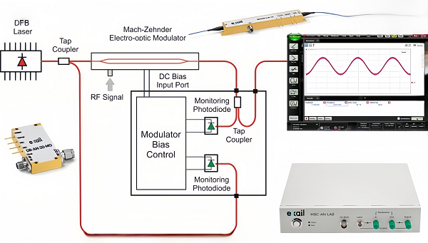 與經典的基于抖動信號(導頻)的偏置控制器不同,MBC-AN-LAB不將任何導頻(抖動)信號疊加到光調制波上。它們被設計用于不需要這種導頻信號的應用,并且通常用于需要高純度載波的模擬應用。它們易于實現,具有自動設置功能,完全自動化。MBC-AN-LAB是在一個緊湊而智能的封裝,具有出色穩定性和重復性。