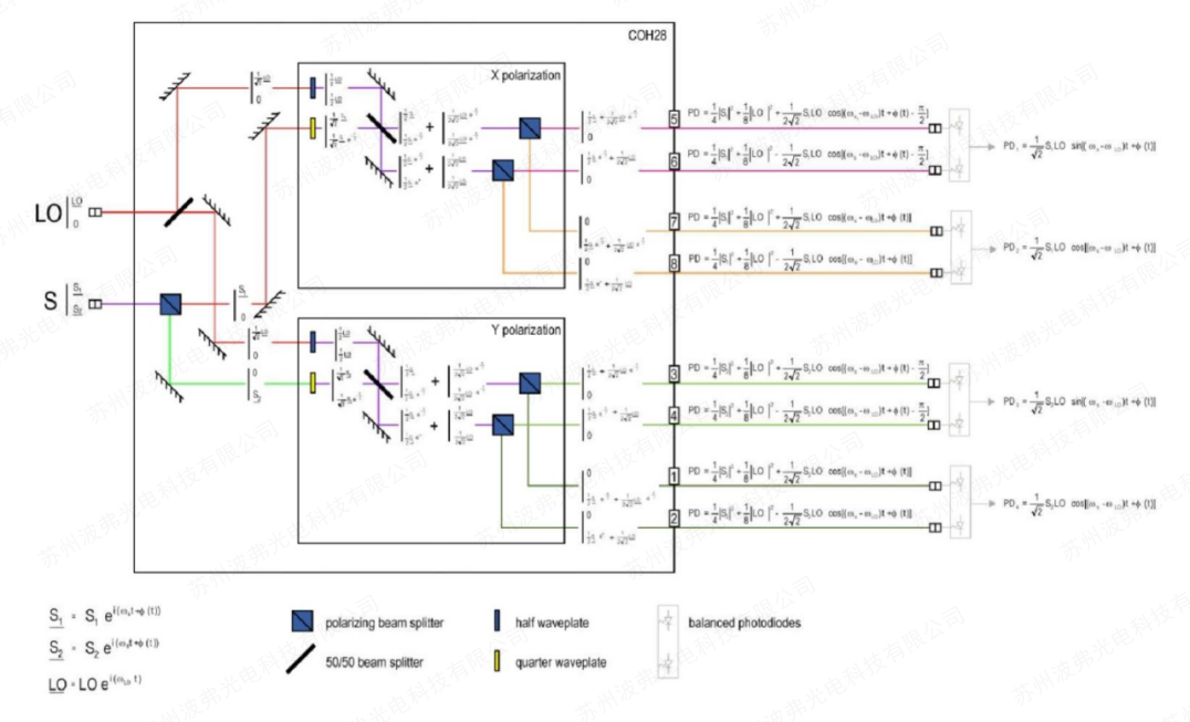 COH28和COH28-X基于兩個單偏振90°光混頻器,能夠從具有任何偏振的信號中提取相位、幅度和偏振。