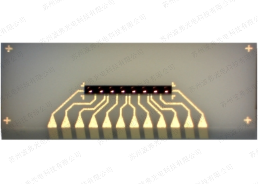 底部照明的8通道光電二極管陣列倒裝焊接在具有環繞金屬化的陶瓷底座上。 導線設計用于使用四對光電二極管進行平衡檢測。