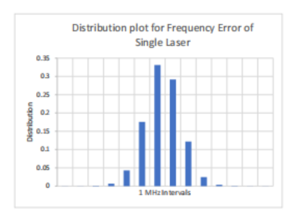 l 分布圖顯示了1 MHz間隔上的分布。大約62%的樣本在+/-1 MHz范圍內(nèi);大約92%在+/-2 MHz范圍內(nèi)。激光器的標(biāo)準(zhǔn)偏差為1.1MHz。 |