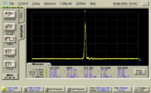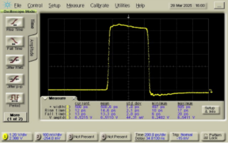 500ps脈寬 @時(shí)鐘頻率. 100kHz,輸出電平 4.6Vpp |