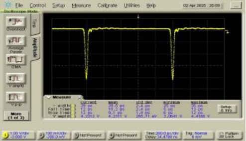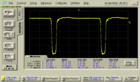 30ps脈寬 @時(shí)鐘頻率. 100kHz,輸出電平 4.1Vpp |
